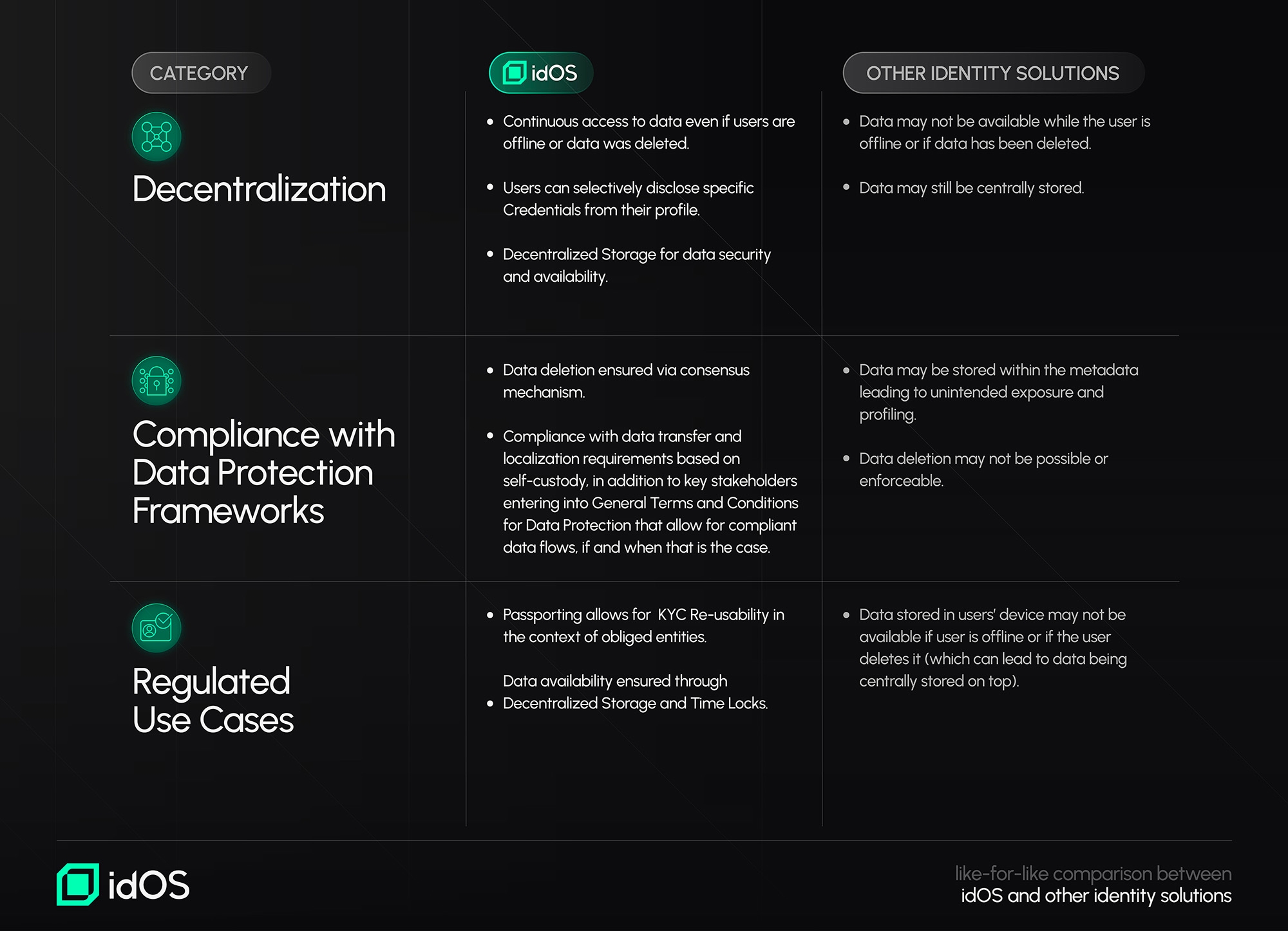 See a like-for-like comparison between idOS and other identity solutions below: